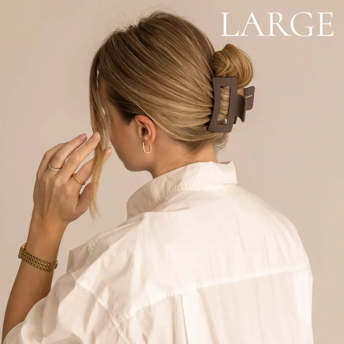 Unsere große Haarklammer besteht aus strapazierfähigem Polycarbonat und ist perfekt für diejenigen unter Euch, die sich eine stilvolle komplette Hochsteckfrisur wünschen, oder auch halbe Hochsteckfrisuren für diejenigen mit etwas dickerem Haar.